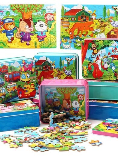 80PCS wooden educational toys educational development baby kids training toys children animal puzzle