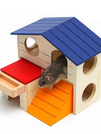 Wooden Hamster Toys Blue Top Villa Hamster Chalet Small Pet Toys Molar Decompression